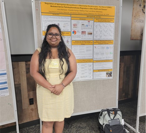 We are excited to celebrate the accomplishments of Dr Usha Mahawar, a Postdoctoral Researcher and Lab Manager, in Dr. Binks Wattenberg’s lab, whose dedication and research have led to two significant milestones this year. The first being publishing her first-author paper and the second being receiving a travel award to present her work at the 2025 Gordon Research Seminar on Barrier Function of Mammalian Skin.